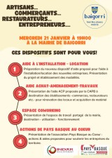 Les associations Indar Développement, Pays Basque au Cœur, ainsi que la commune de Baigorri ont présenté les différents dispositifs d’aide à destination des entreprises, commerçants, restaurateurs et artisans. Le travail va se poursuivre dans les semaines et mois à venir. N’hésitez pas à nous contacter pour toute demande.